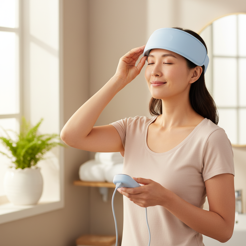 It’s incredibly comfortable! The adjustable headband gently wraps around your head, delivering airbag pressure massage that feels like a warm, comforting embrace. You can even wear it while reading or relaxing.